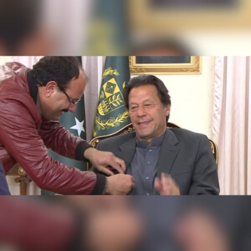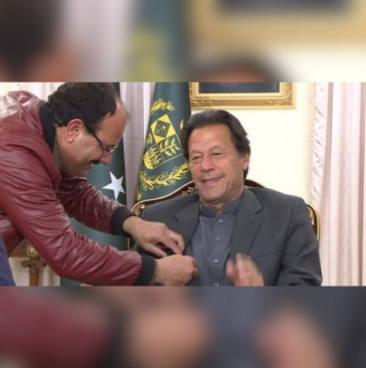 Hassan Khan Placing Microphone to Imran Khan for ETN Live Broadcast interview.